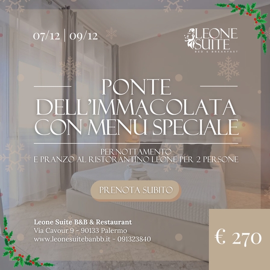 Dal 24 al 26 dicembre, il Leone Suite B&B ti accoglie con un soggiorno pensato per farti vivere il Natale tra comfort,